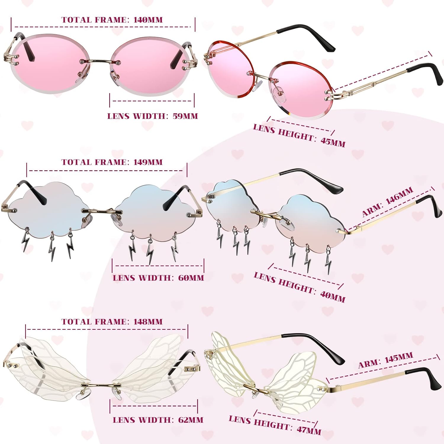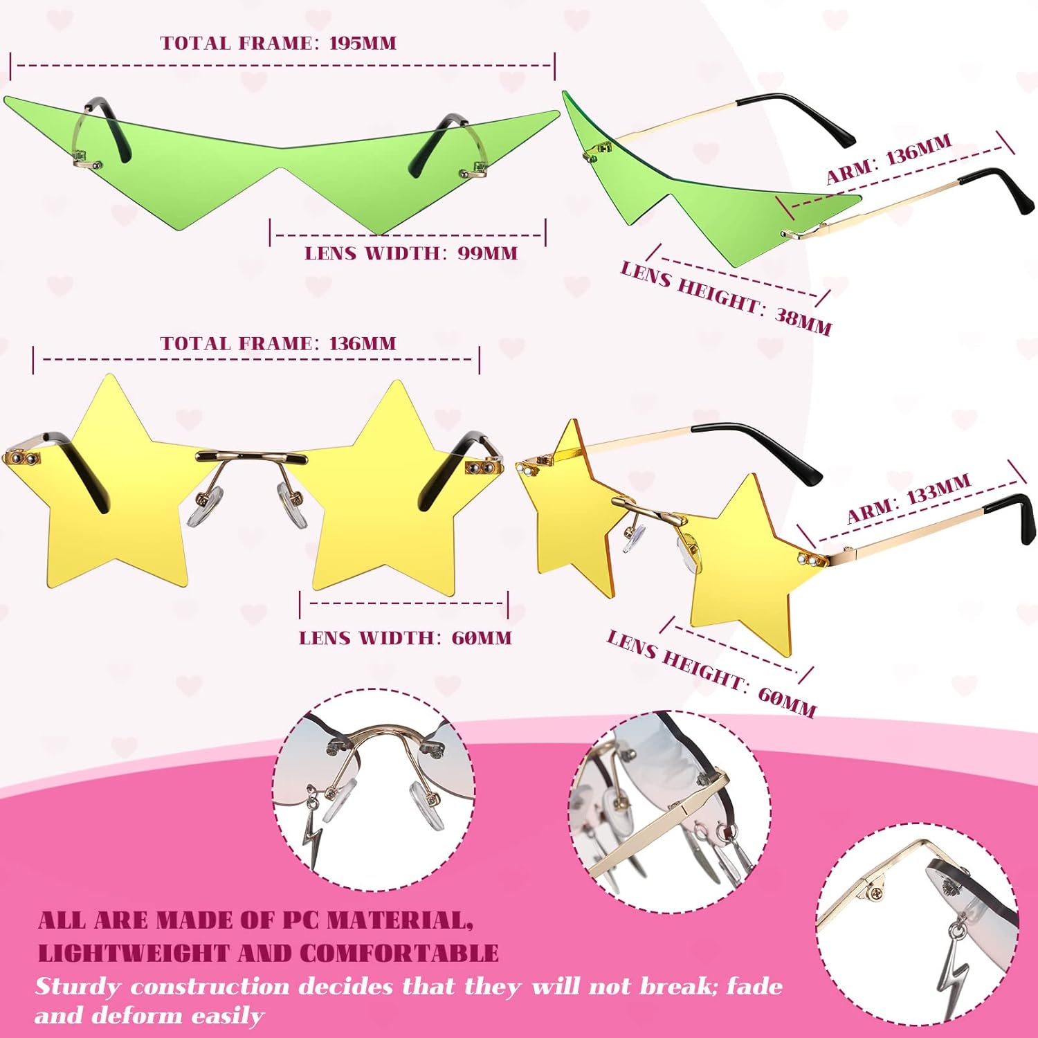 8 Pcs Irregular Sunglasses Set Heart Sunglasses Flame Cloud Butterfly Star Rimless Shape Party Favors (Stylish Style)