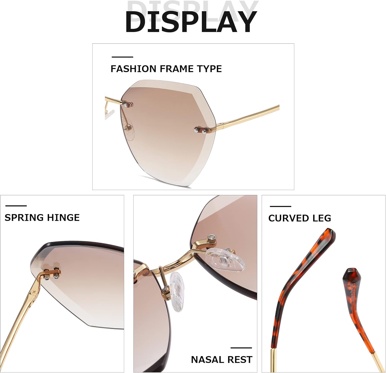 AEVOGUE Sunglasses For Women Oversized Rimless Diamond Cutting Lens Sun Glasses AE0534