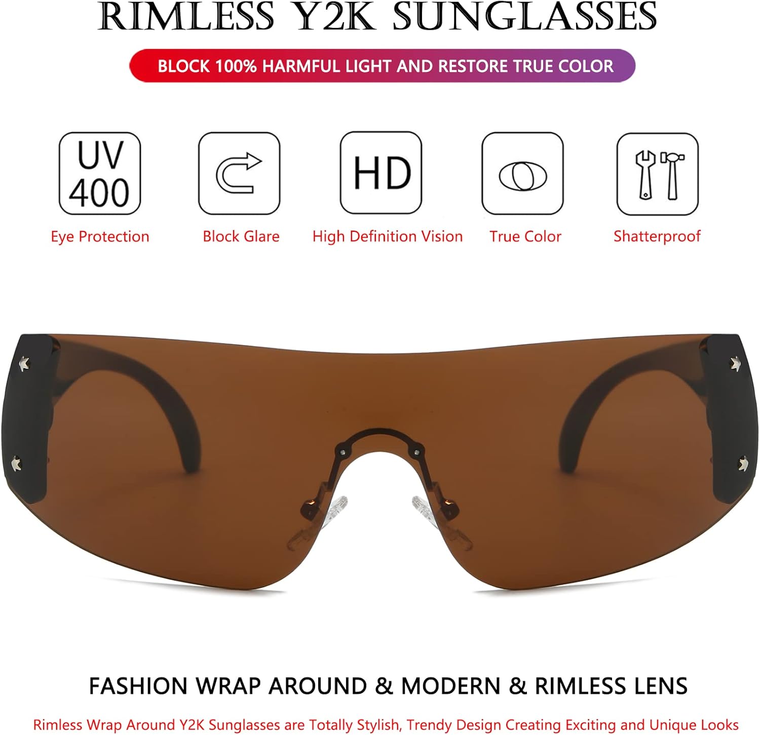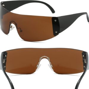 AIEYEZO Oversized Y2K Sunglasses for Women Men Trendy Retro Wrap Around Big Shield Sun Glasses