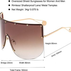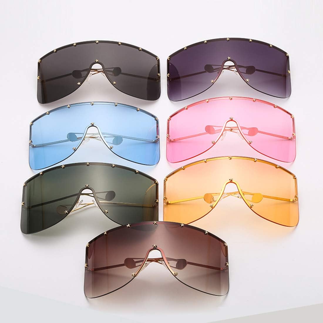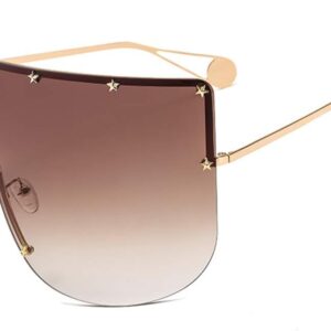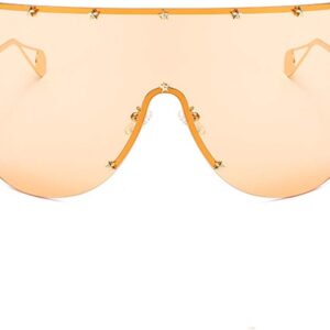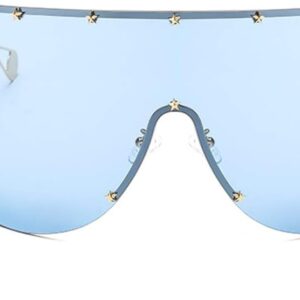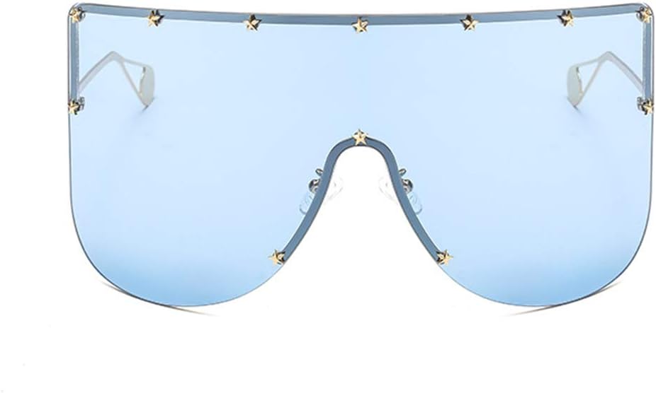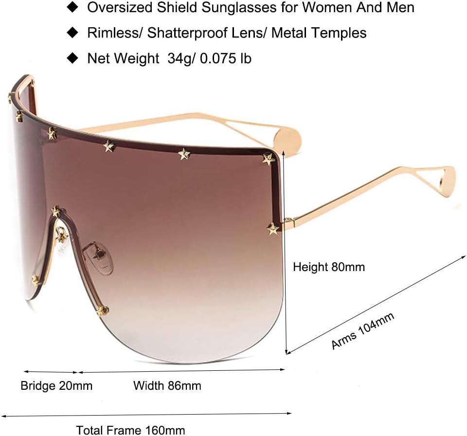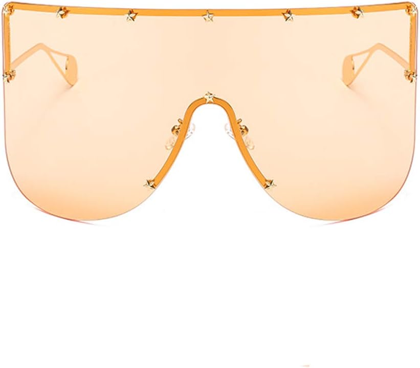 Trendy, durable, and futuristic, the shield sunglasses from Armear is high fashionable, sophisticated, and big oversized. The rimless design is popular with star rivets decoration. High definition, hard, shatterproof, no-crack huge oversize lens, fought against uv sun rays, is enough as visor mask for driving, biking, hiking, fishing, golf and other outdoor activities, while stronger and reinforced metal hinges are going to withstand countless opening and closing. Includes a protective storage case.