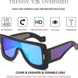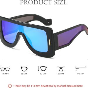 - Stylish oversized shield sunglasses, integrated lenses, with metal rivets, wide-leg lens design, the overall shape perfectly covers the eyes like a shield, looks mysterious and personalized when worn, adding a futuristic and fashionable sense to your clothing.