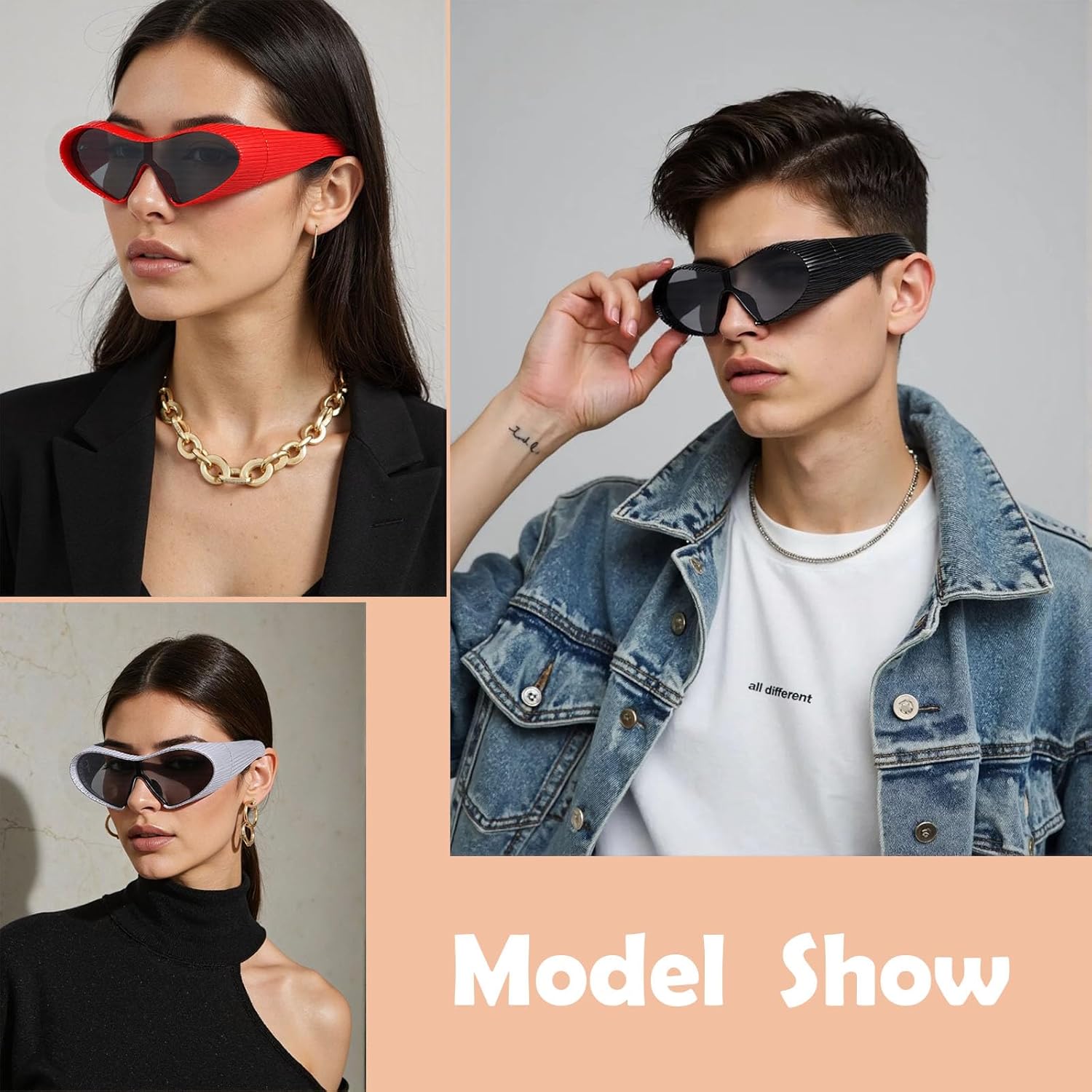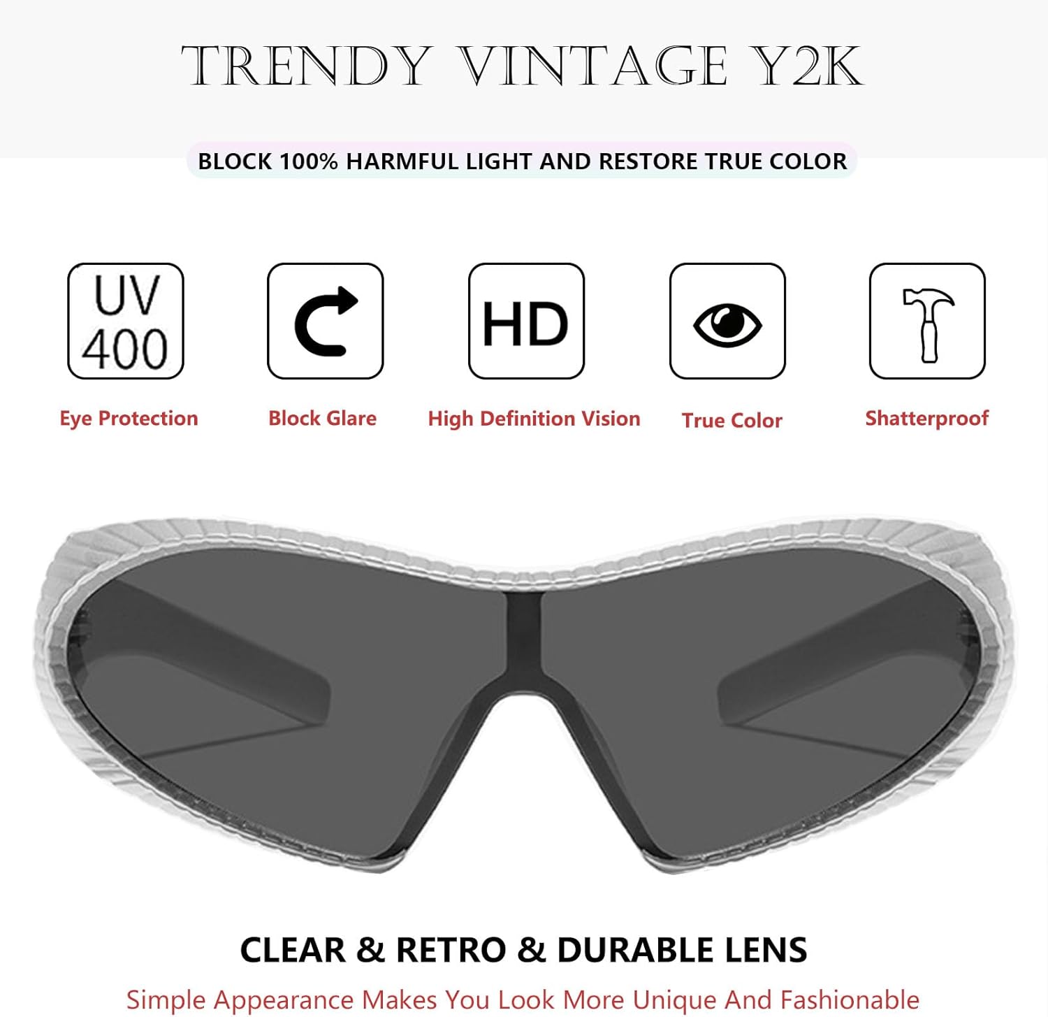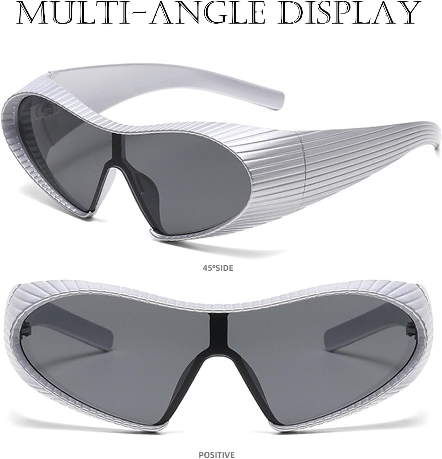 Bsreyeop Futuristic One-piece for Women Men Cyberpunk Mirrored Fashion Sun Shades for Costume Party Club