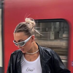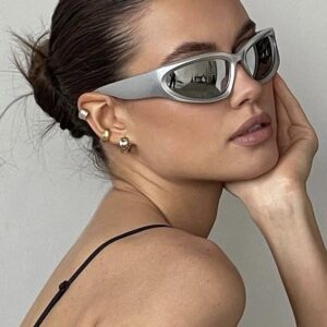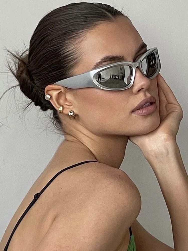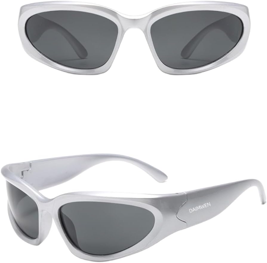 DAIMWEN Futuristic Sunglasses Thick Frame for Men Women Cool Oval Wrap Around Sport Sunglasses