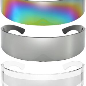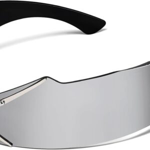 Dollger Futuristic Sunglasses Y2K Space Cyclops Wrap Around Glasses Rimless Translucent Mirrored Lens