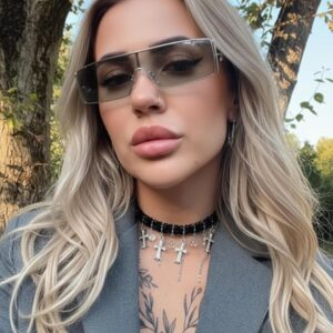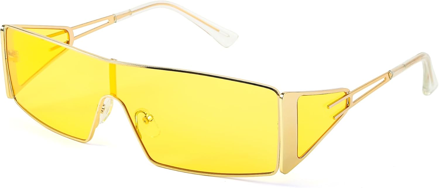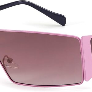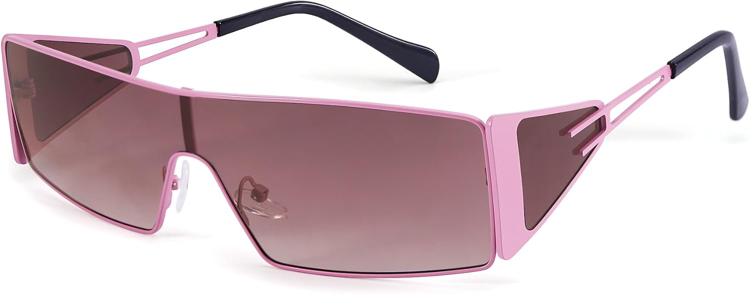 FancyPink Y2K Sunglasses for Women- Retro Rectangular Wrap Around Glasses -2000S Non-polarized Sun Glasses Metal Shades