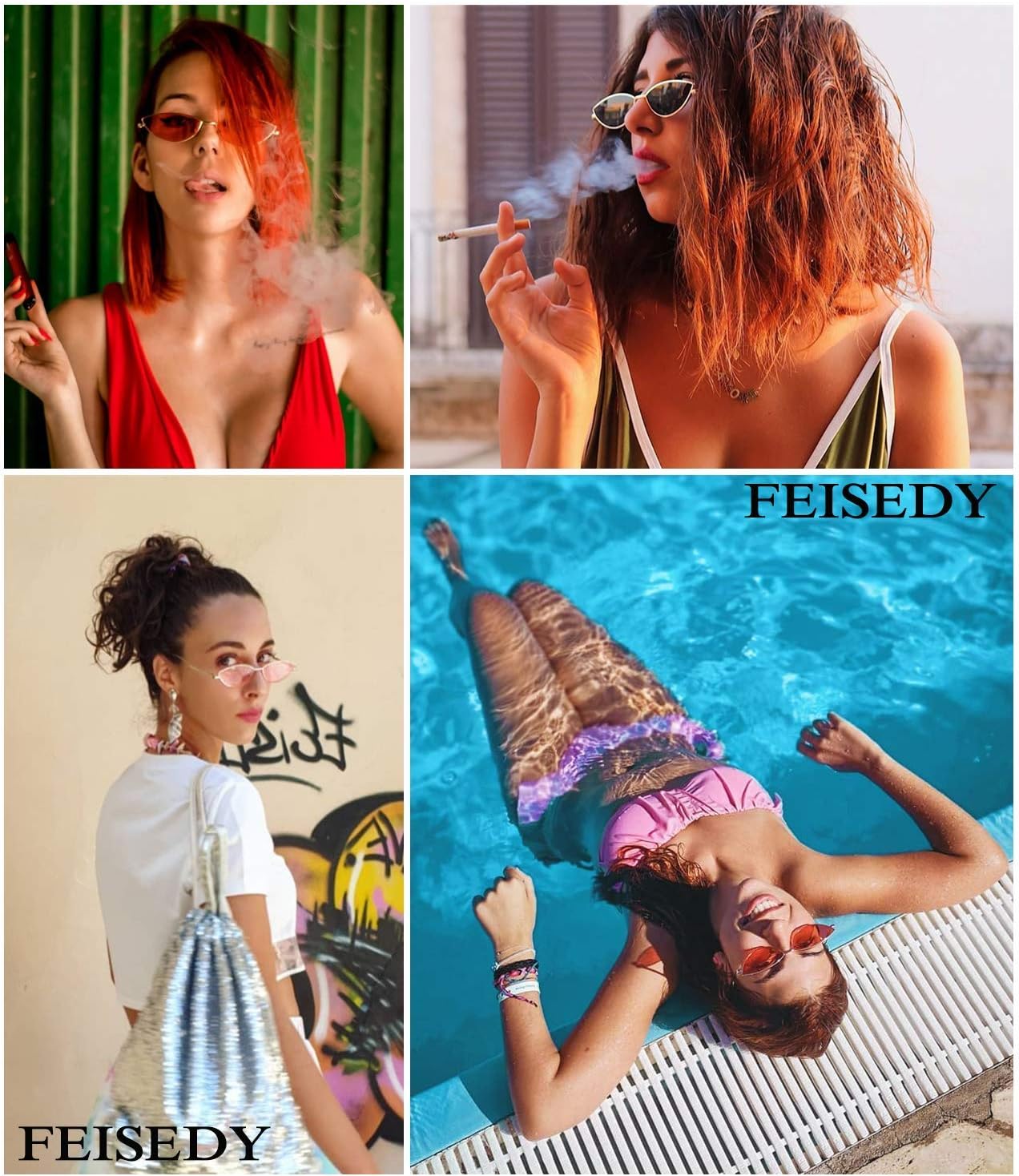 FEISEDY Fashion Designer Sunglasses Retro Small Petals Shape Arc Temple Design B2298