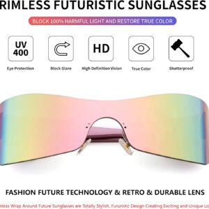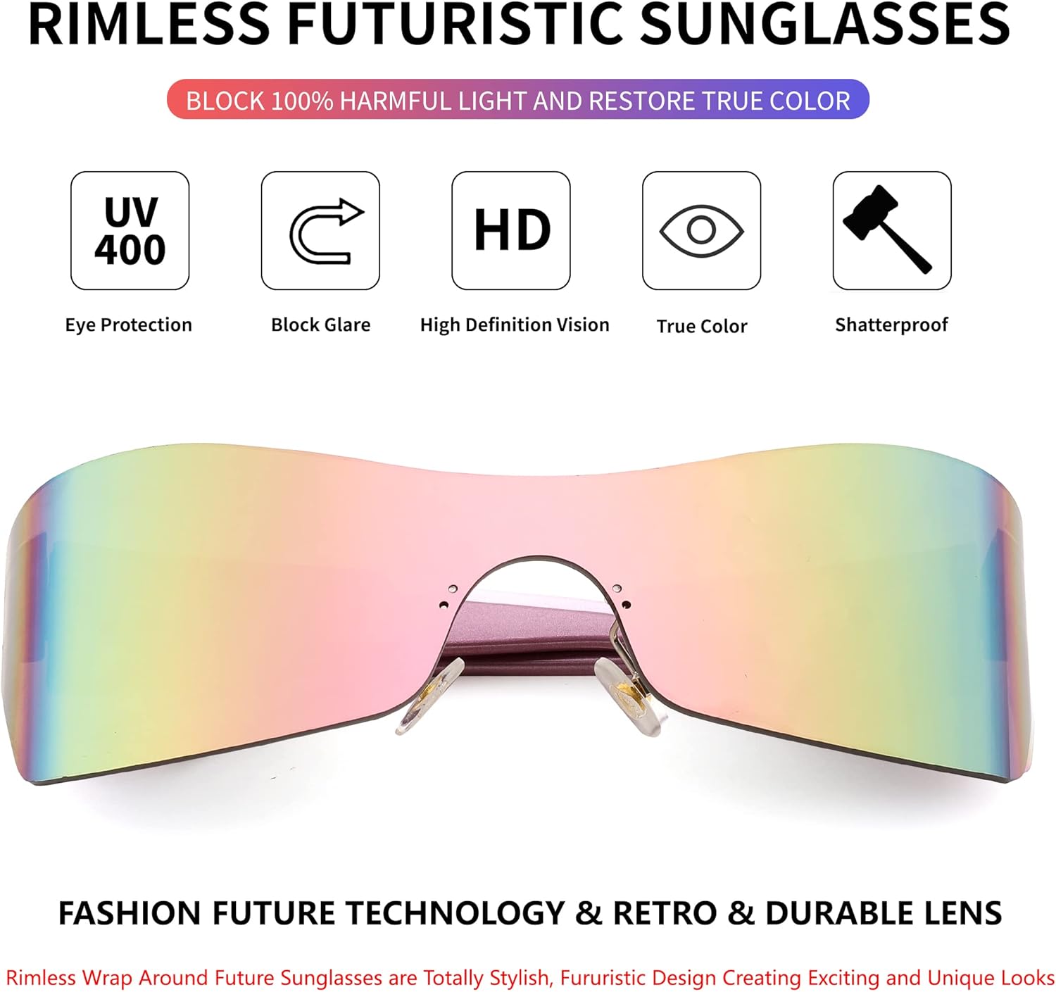 FEISEDY Fashion Rimless Futuristic Wrap Around Sunglasses Women Men punk Visor Sunglasses B2329