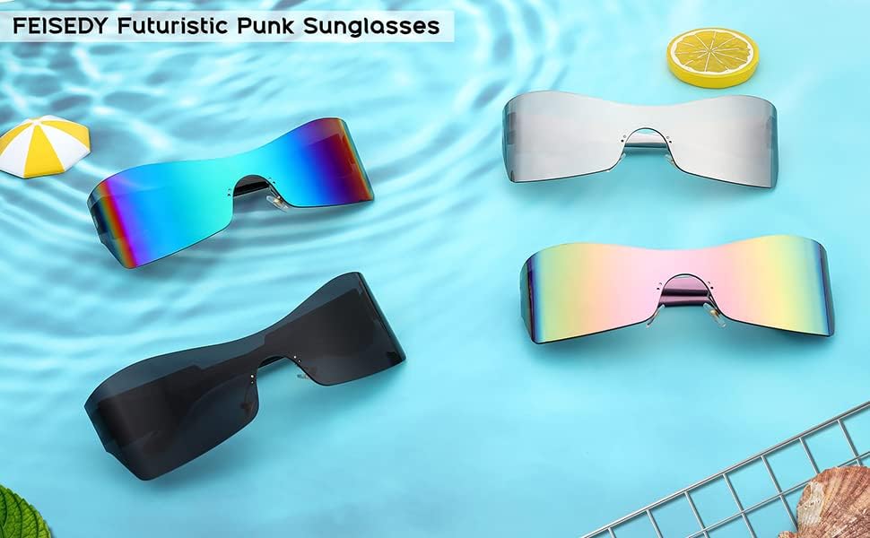 Be the first to review “FEISEDY Fashion Rimless Futuristic Wrap Around Sunglasses Women Men punk Visor Sunglasses B2329” Cancel reply