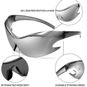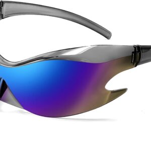FEISEDY Futuristic Sunglasses, Fashion Alien Y2K Wrap Around for Women Men B4135