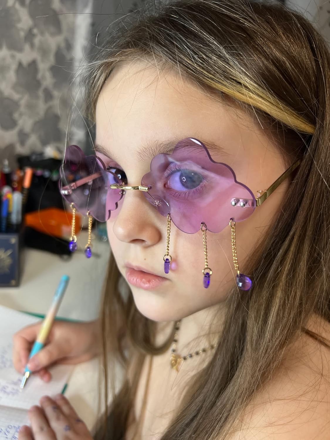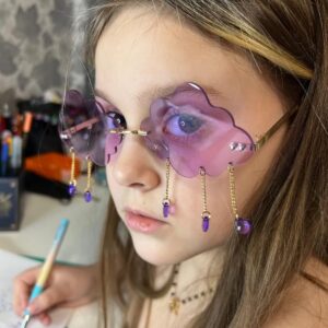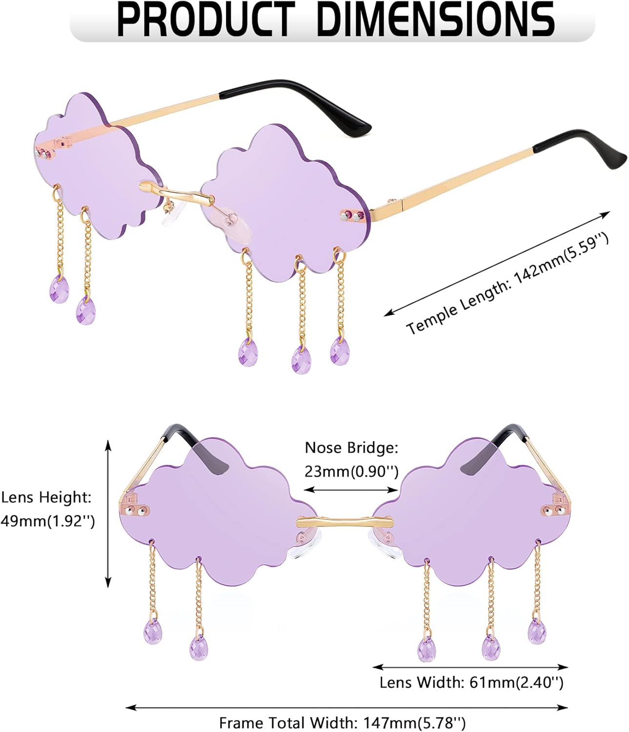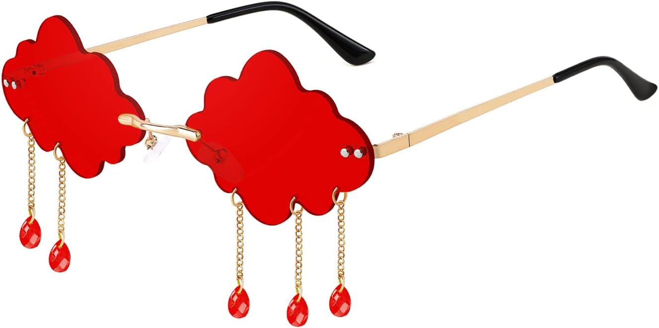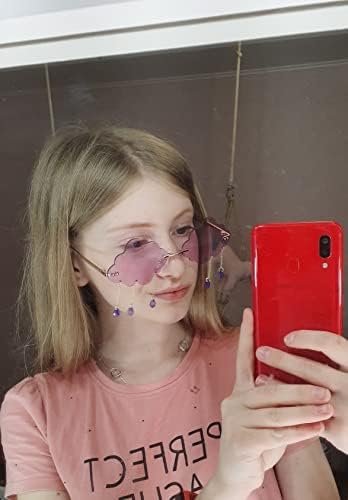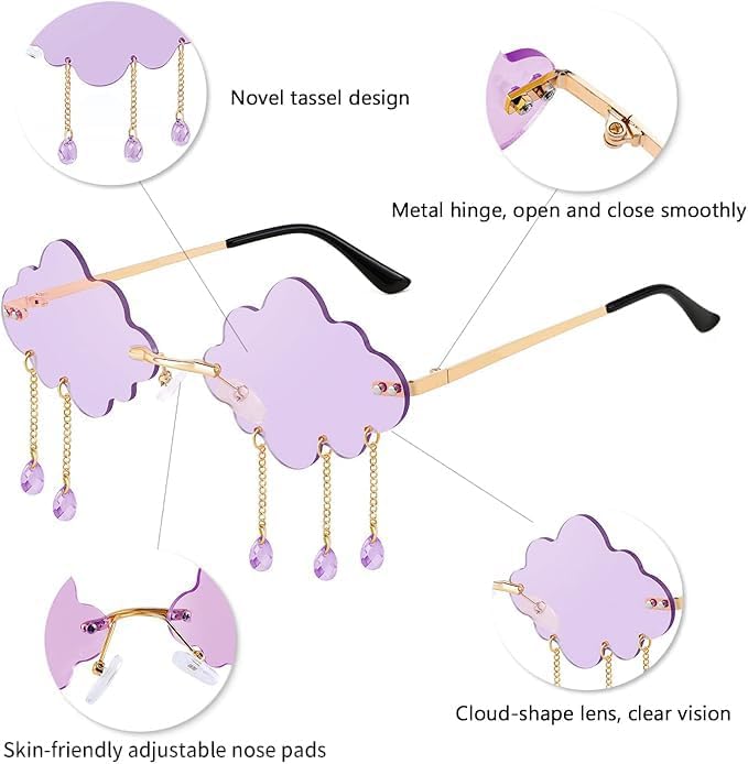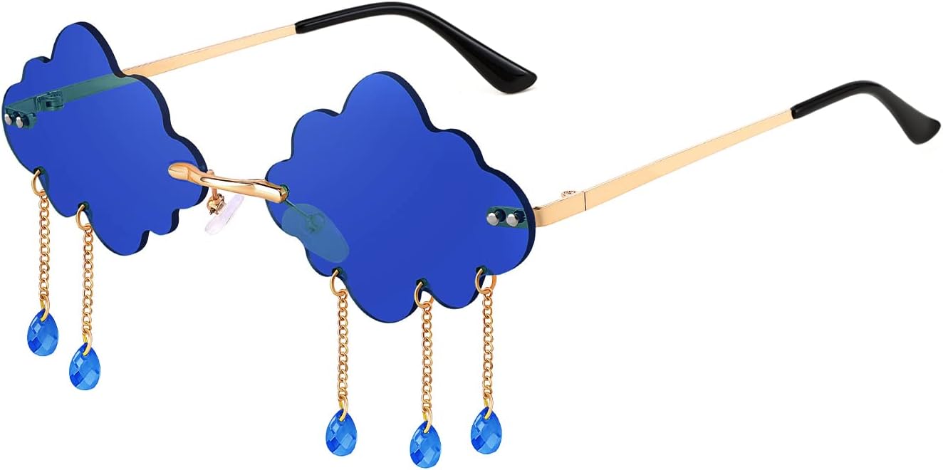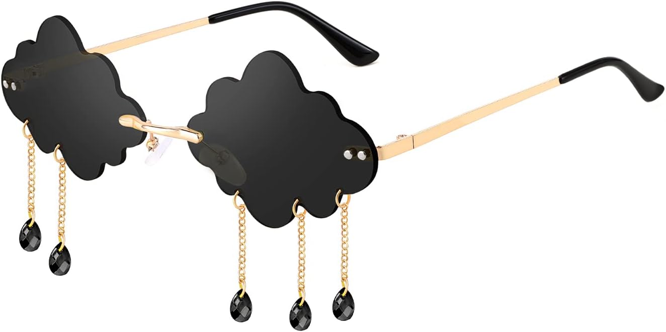 FEISEDY Retro Dripping Cloud Shaped Tassel Sunglasses Rimless Women Funny Party Disco Eyewear B2834