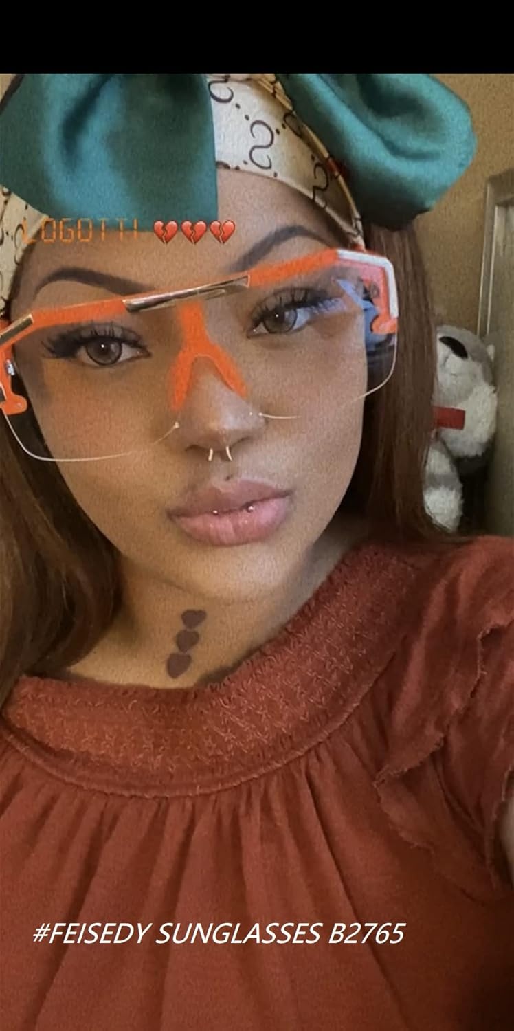 FEISEDY Square Flat Top Shield Sunglasses One Piece Frameless Stylish Women Men UV400 B2765 (Orange Frame, 73)