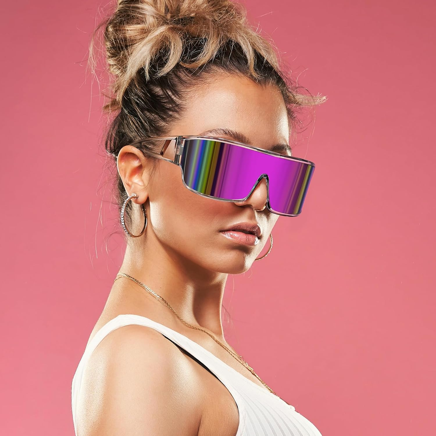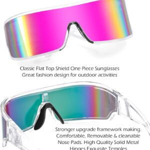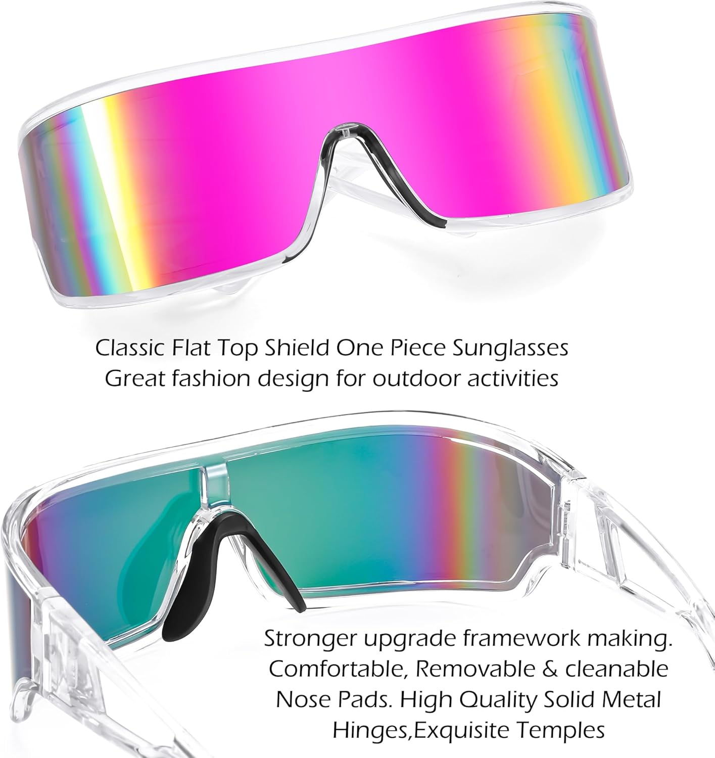 Fashion flat top design, one piece mirror lens for women men. Unique Futuristic shield frame design brightens people's eyes, and the punk style design shows a full sense of technology.