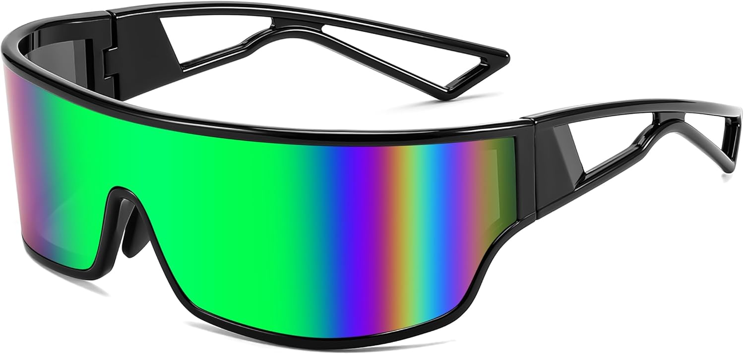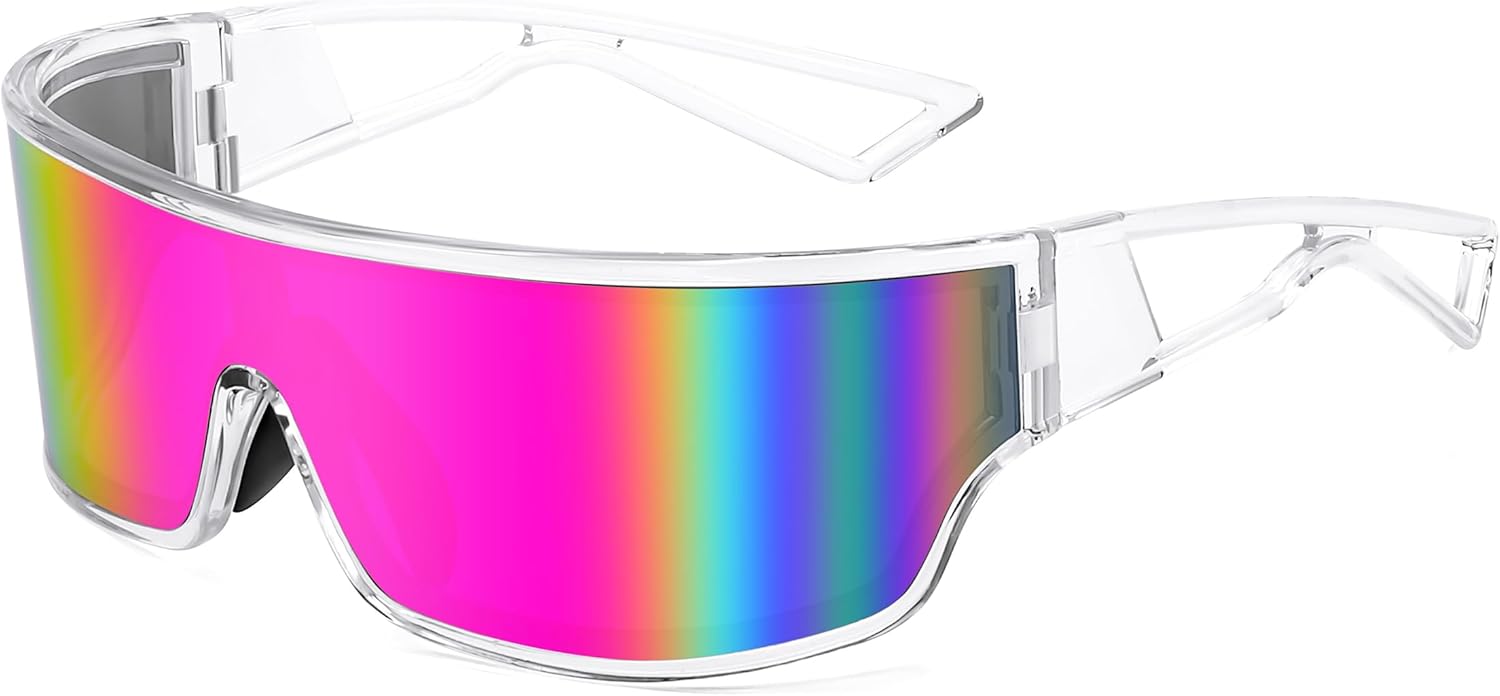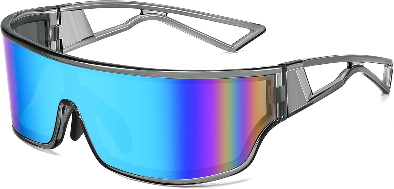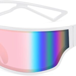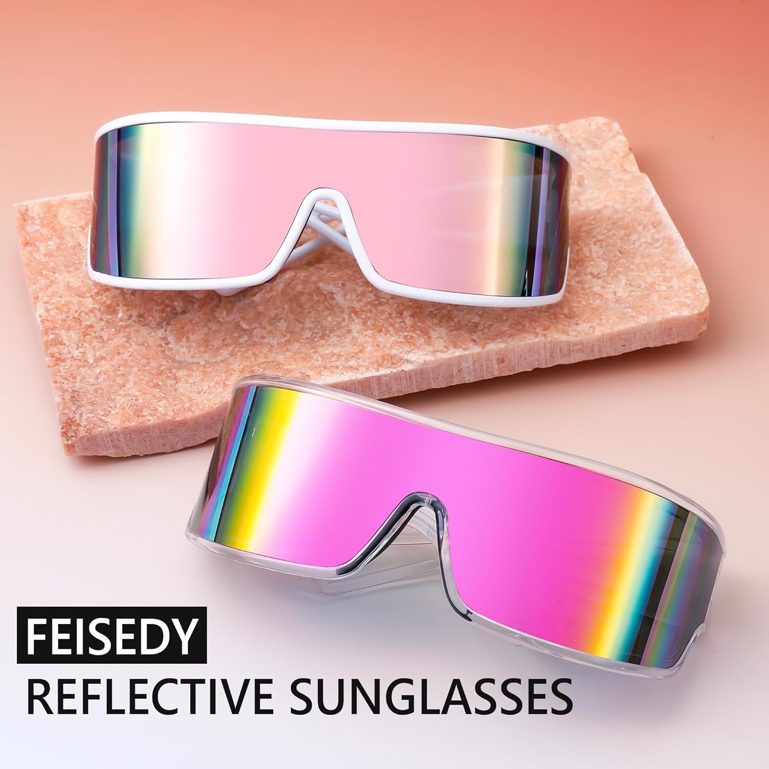 FEISEDY Futuristic one piece sunglasses can block 100% of both of UVA and UVB rays. Restore true color, eliminate reflected light and scattered light and protect eyes perfectly.