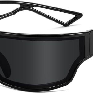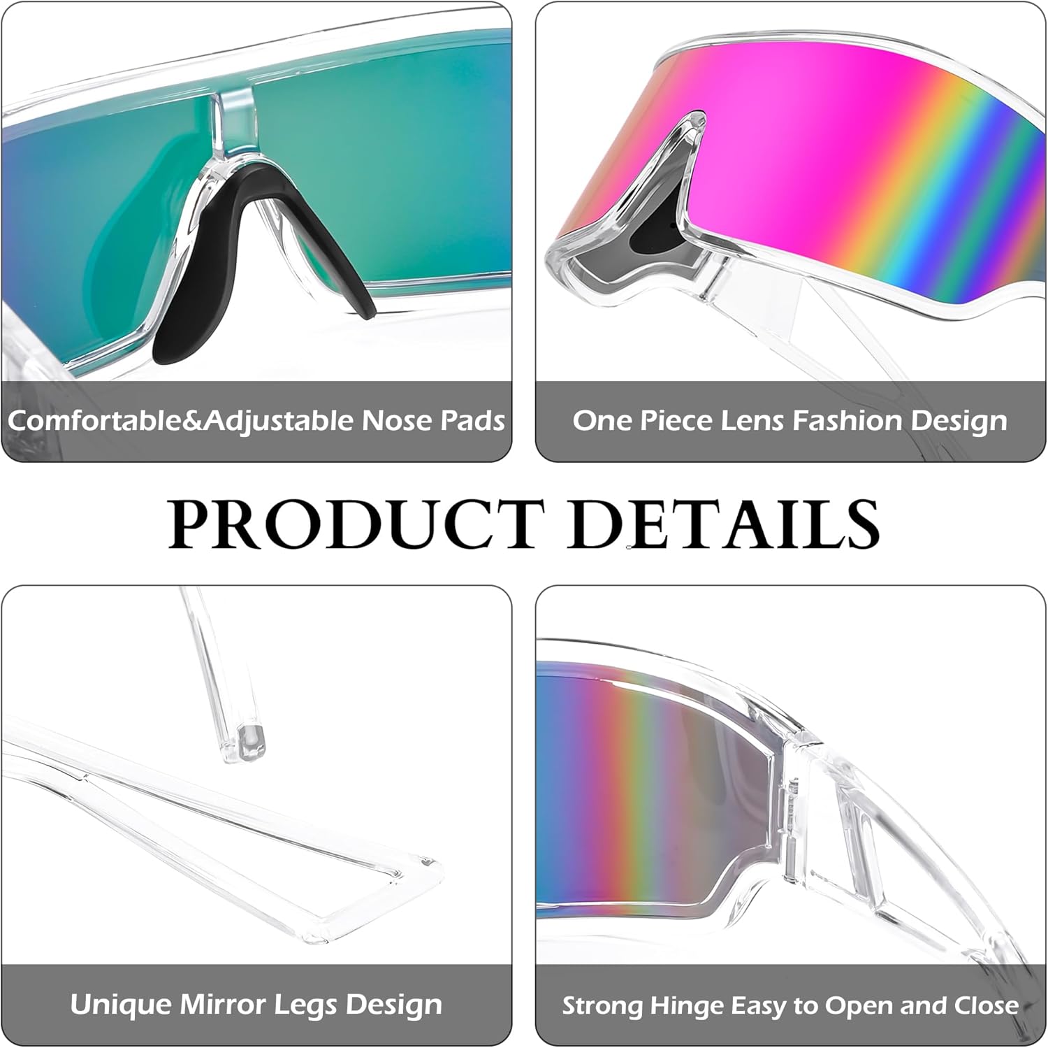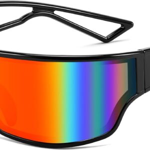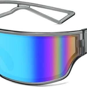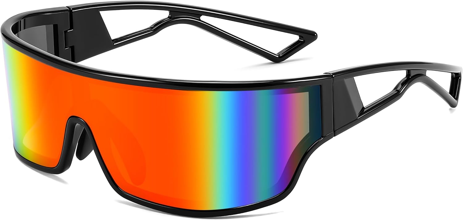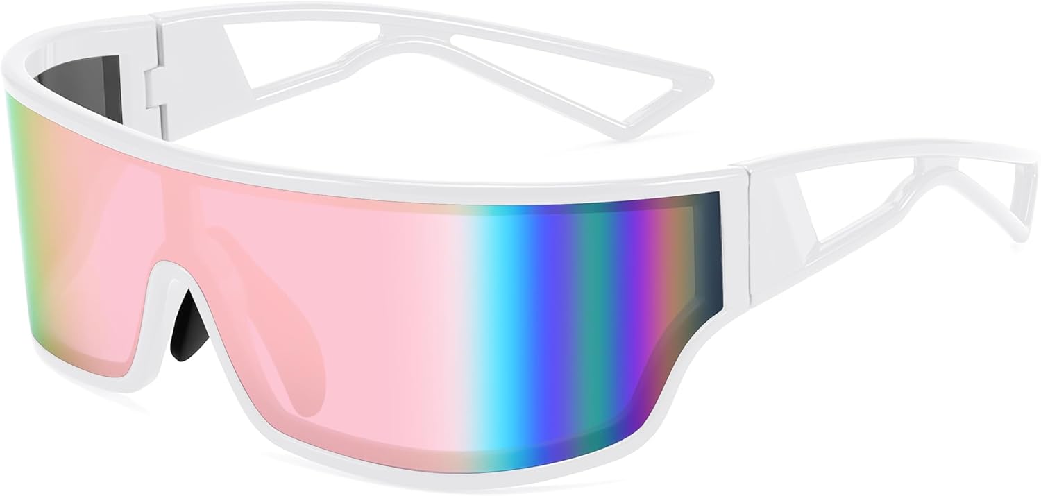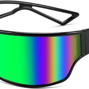 FEISEDY Futuristic one piece sunglasses can block 100% of both of UVA and UVB rays. Restore true color, eliminate reflected light and scattered light and protect eyes perfectly.