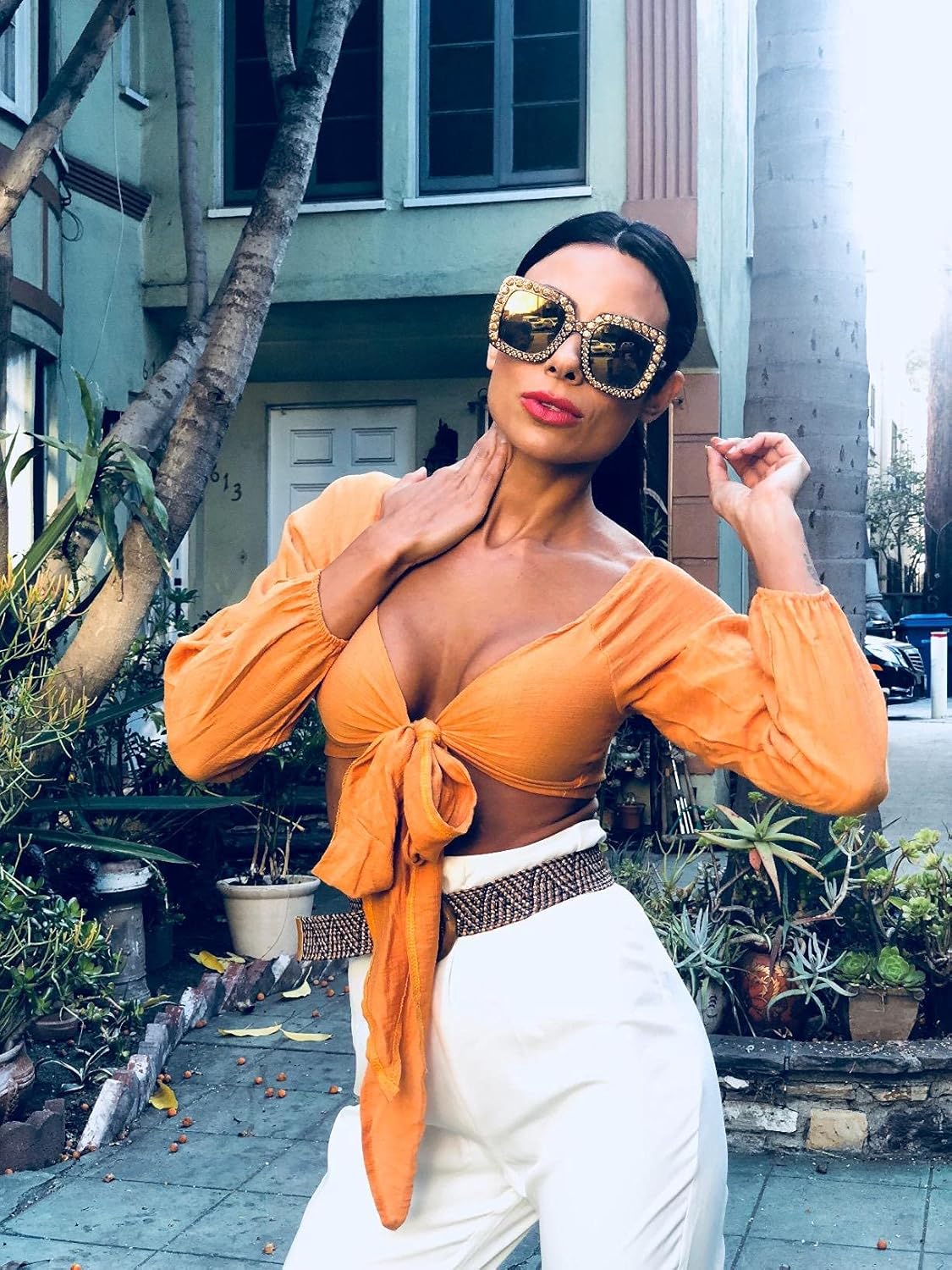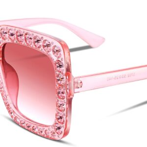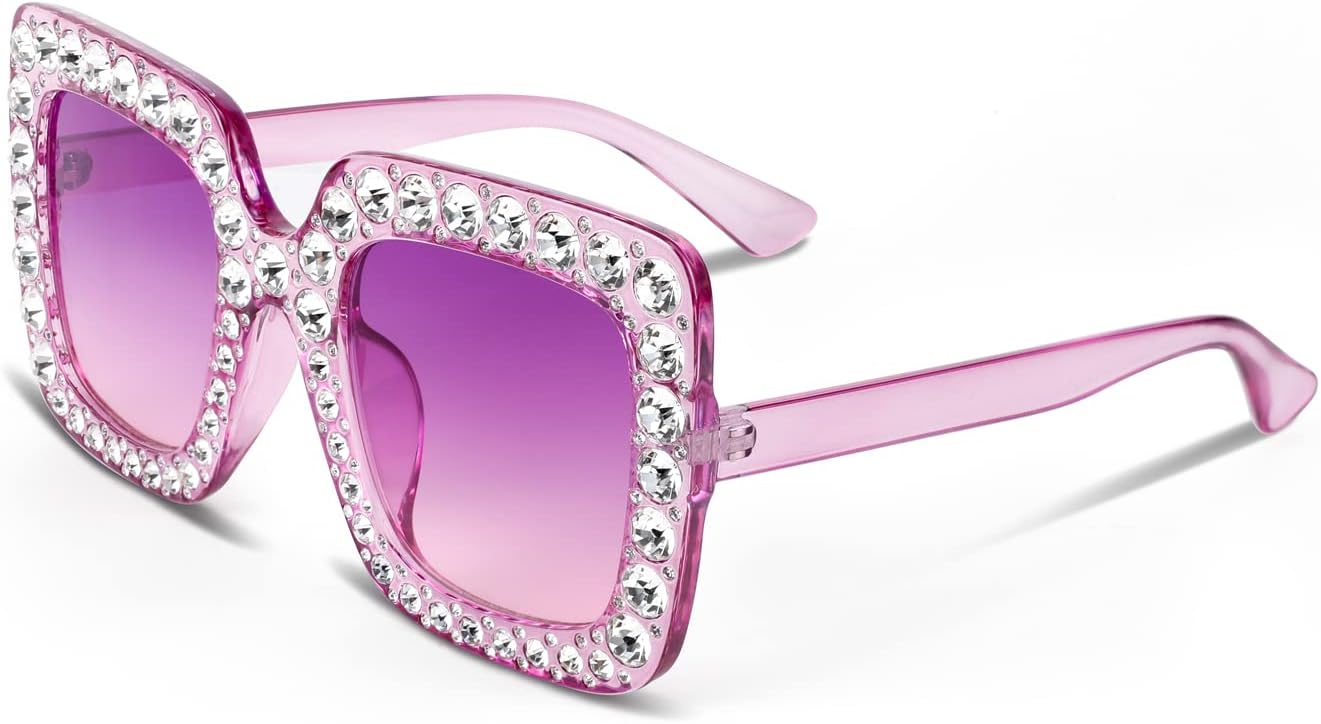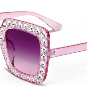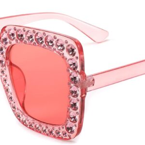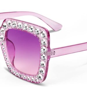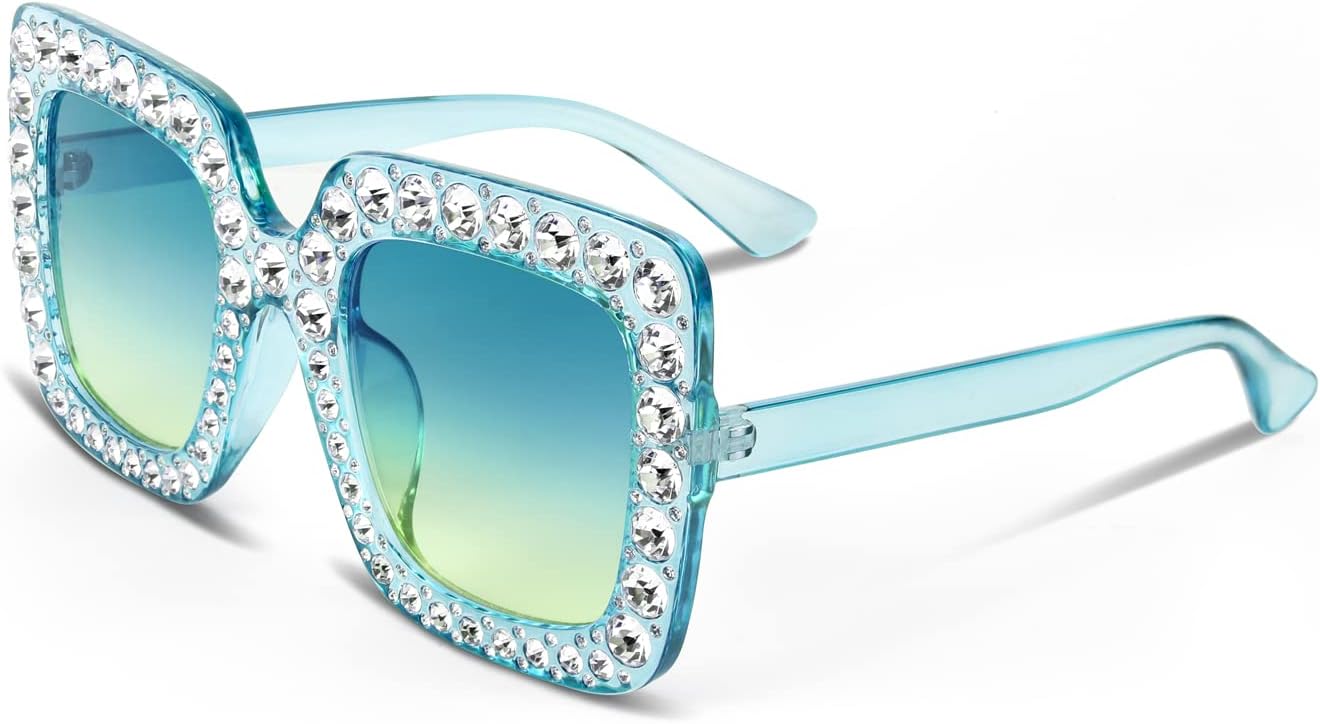 FEISEDY Women Sparkling Crystal Sunglasses Oversized Square Thick Frame B2283