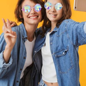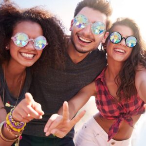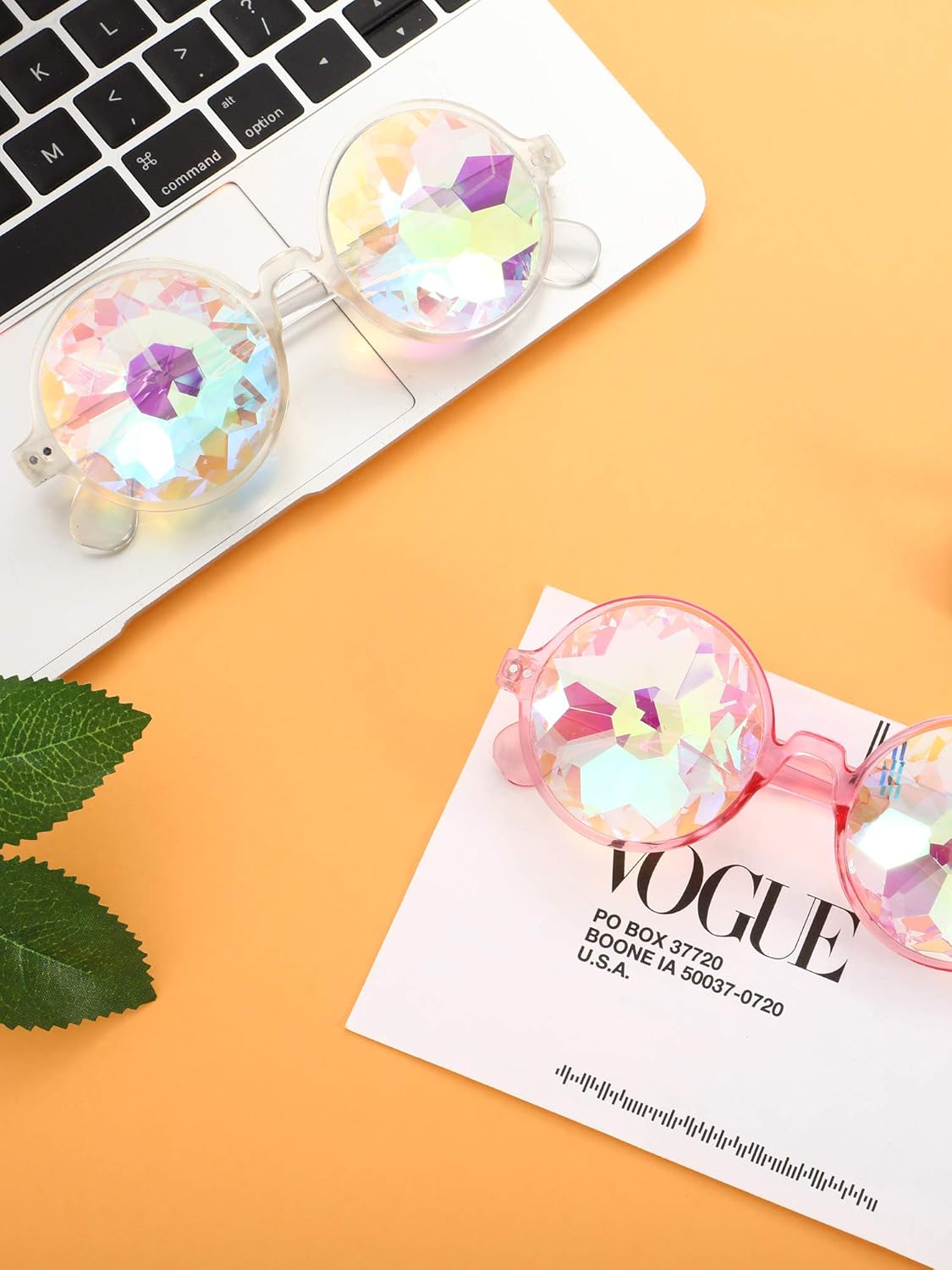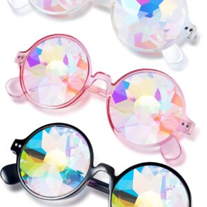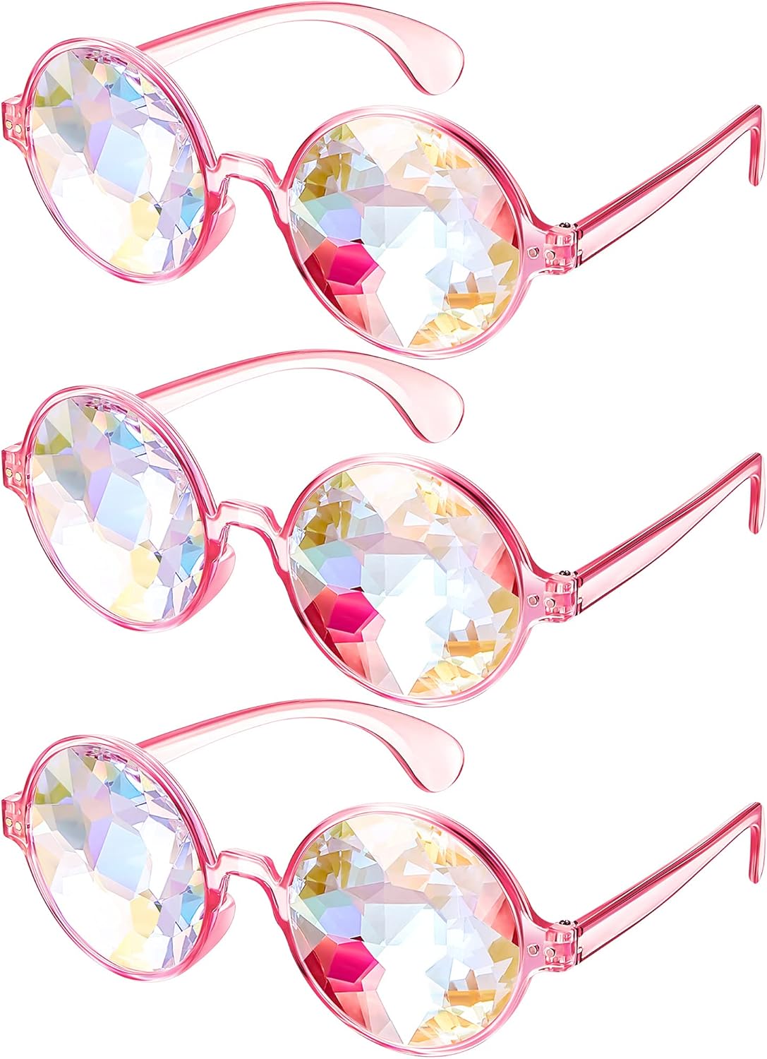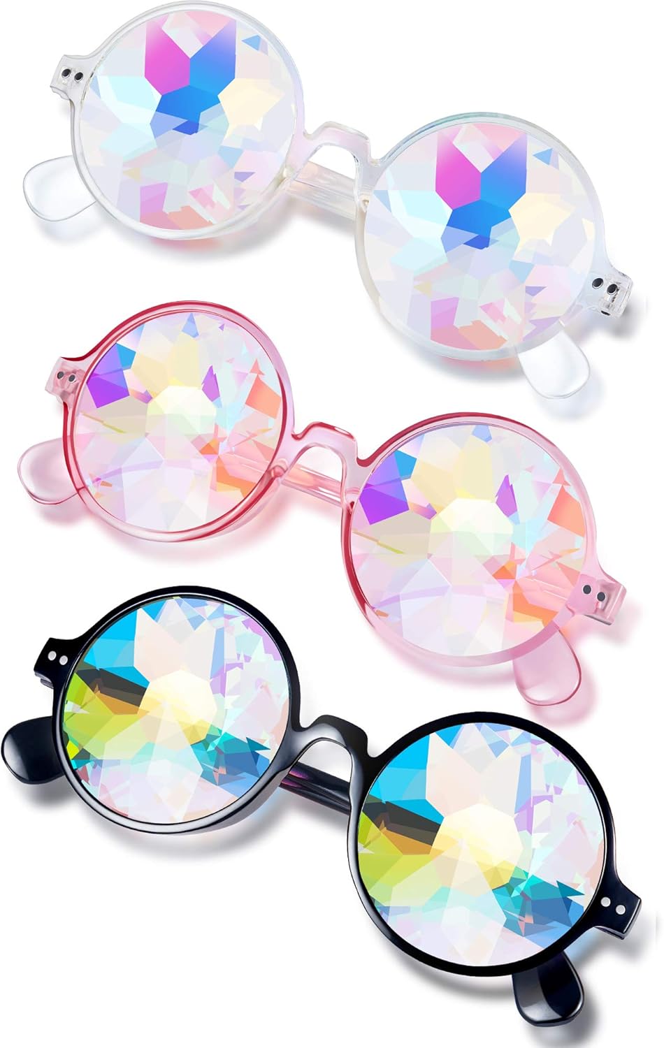 Frienda 3 Pairs Kaleidoscope Rave Glasses Festivals Goggle Rainbow Sunglass Kaleidoscope Sunglass Prism Refraction Glasses