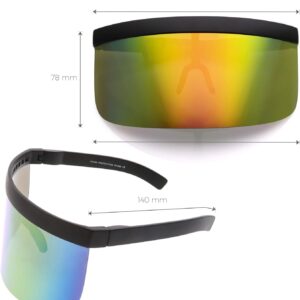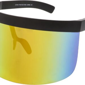 Futuristic Oversize Shield Visor Sunglasses Flat Top Mirrored Mono Lens 172mm