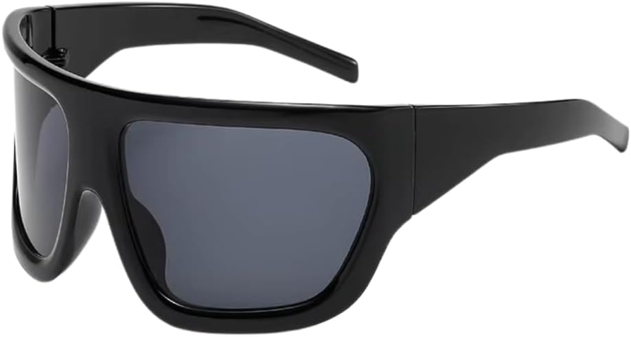 IMPERO Punk Retro Shades UV400 One Piece Black Mask Sunglasses – Futuristic Large Frame Tech-Inspired for Men and Women