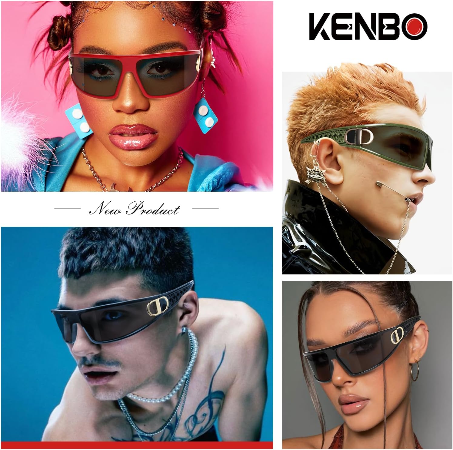 KENBO Y2K Sunglasses Wrap Around Futuristic Sunglasses for Women Men Fashion Sport Shades Sun Glasses UV400