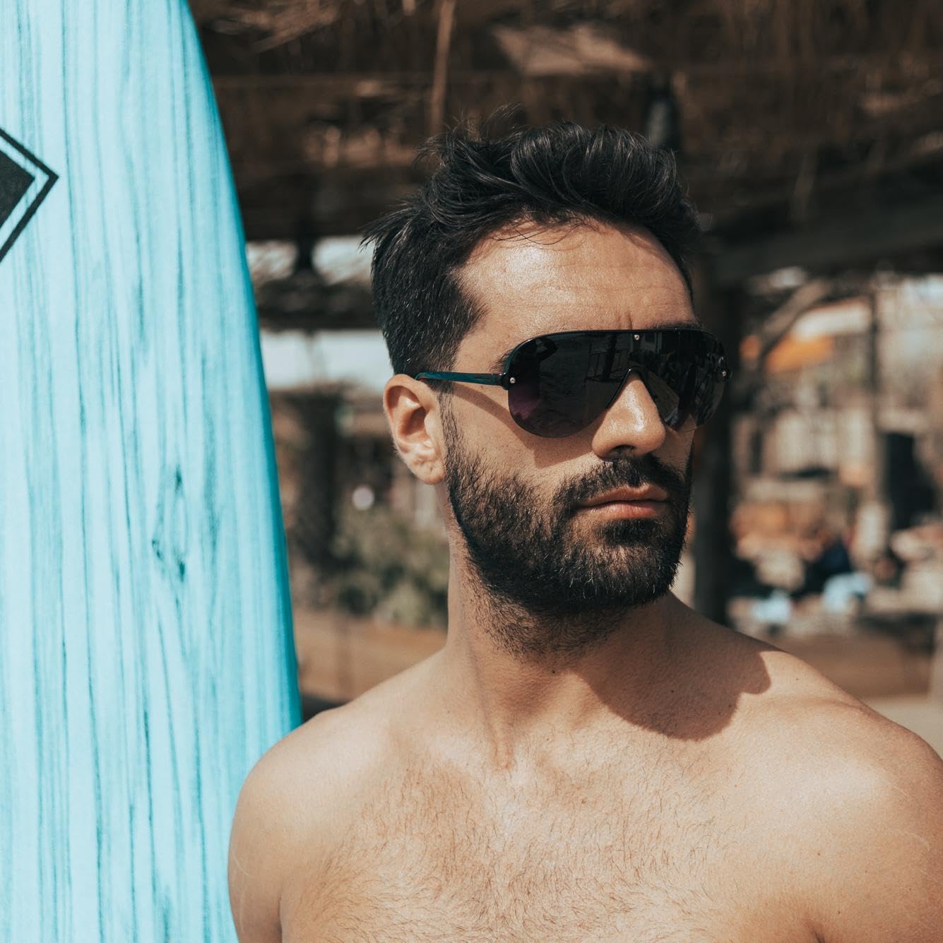 The Scarface sunglasses, made entirely of polycarbonate, feature a bold and enveloping design, ideal for those who want a bold and contemporary look. The unique mask shape, characterized by a continuous lens and details with small decorative screws, gives a futuristic and gritty charm, perfect for charismatic and self-confident personalities. These unisex glasses match perfectly with streetwear or sporty outfits, such as leather jackets or casual suits, but they also manage to add a touch of originality to more sophisticated looks. Designed for those looking for an accessory that does not go unnoticed, the Scarface model represents the balance between functionality and impactful style.