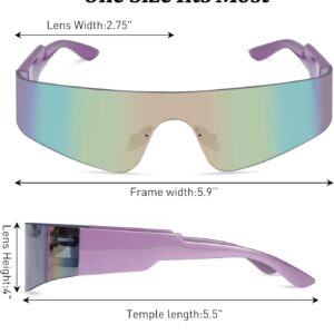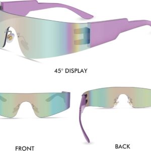 milramtob Futuristic Wrap Around Fashion Sunglasses Y2K Silver Trendy Rimless Glasses Cyberpunk Eyewear Women Men Rave Party