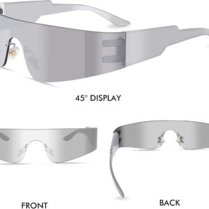 ![]() milramtob Futuristic Wrap Around Fashion Sunglasses Y2K Silver Trendy Rimless…