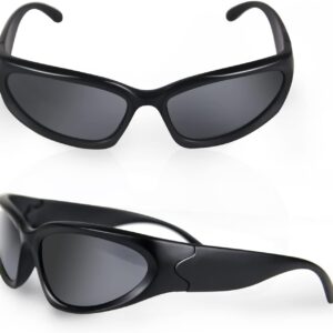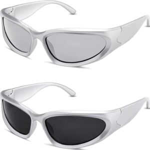 ![]() milramtob Futuristic Wrap Around Fashion Sunglasses Y2K Silver Trendy Rimless…
