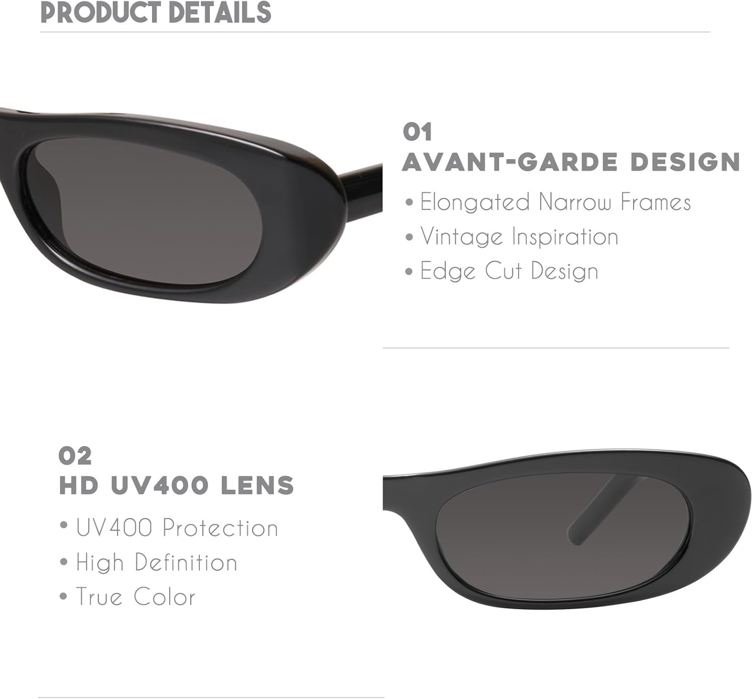mosanana Elongated Narrow Cat Eye Sunglasses for Women MS52357