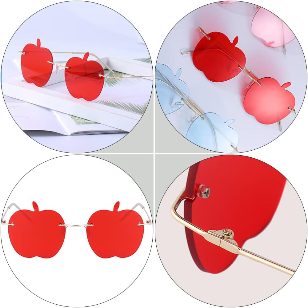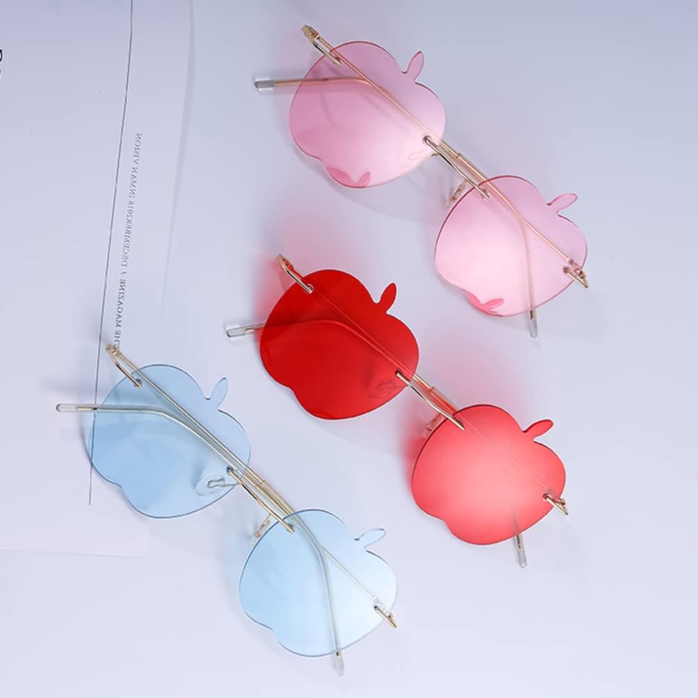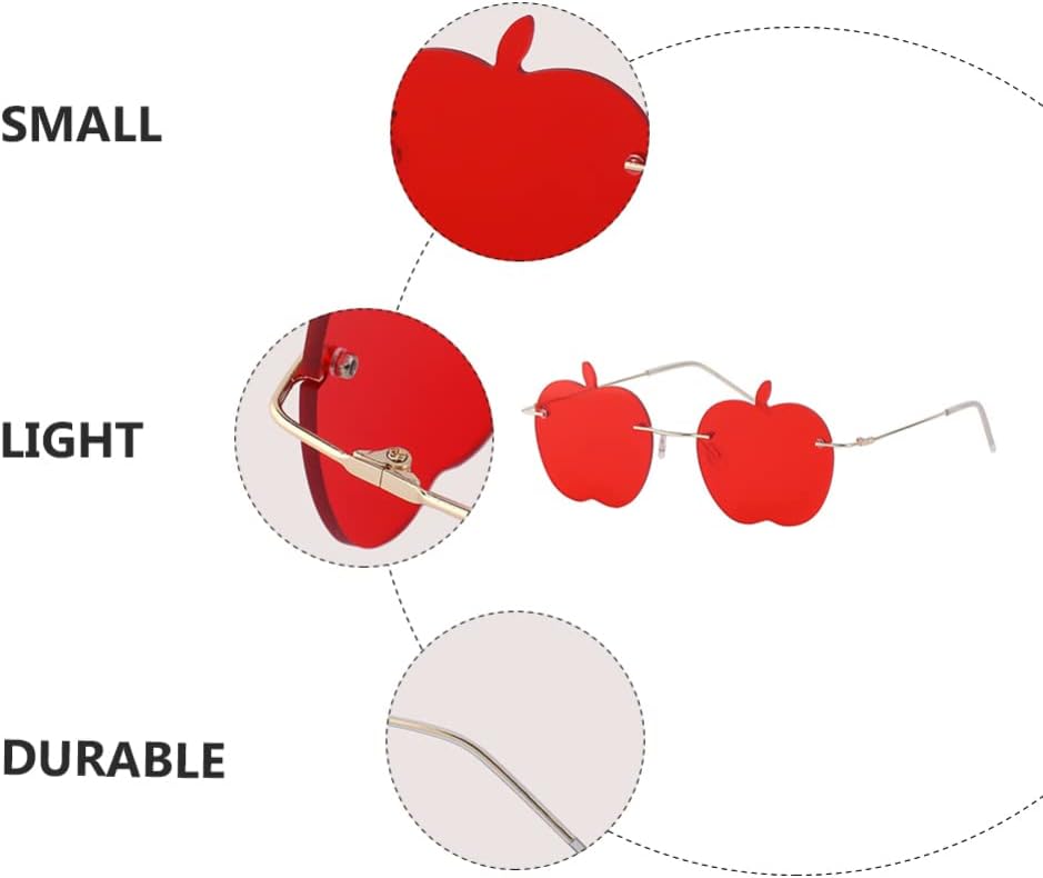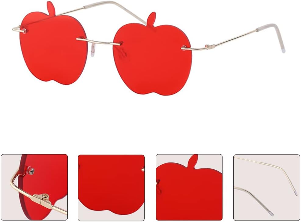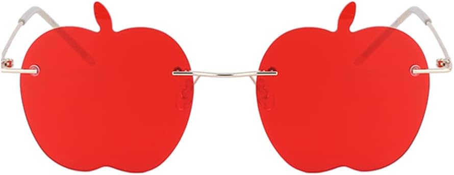 NOLITOY 1pc Funny Sunglasses Xmas Party Glasses Decorative Suns s for Men Narrow Eyes Eyewear Metal Frameless Novelty s Alloy Man Apple Shape Goggles