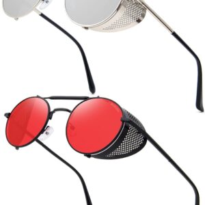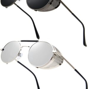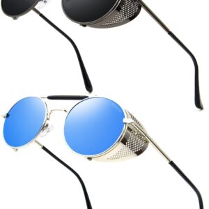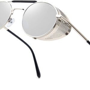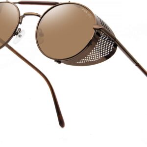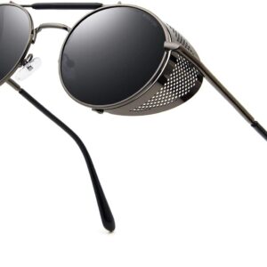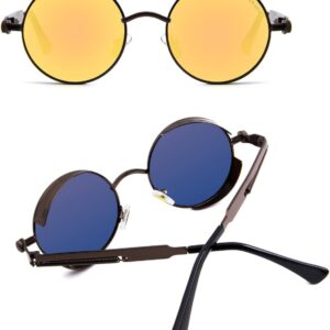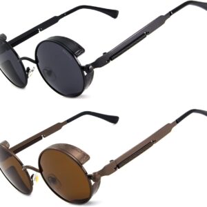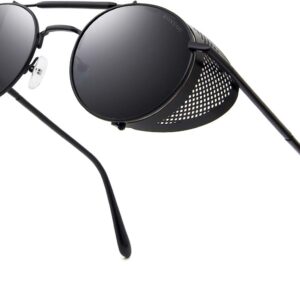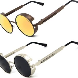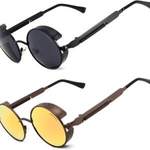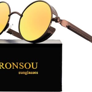 RONSOU Steampunk Style Round Vintage Polarized Sunglasses Retro Eyewear UV400 Protection Matel Frame