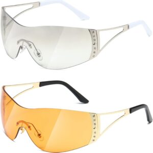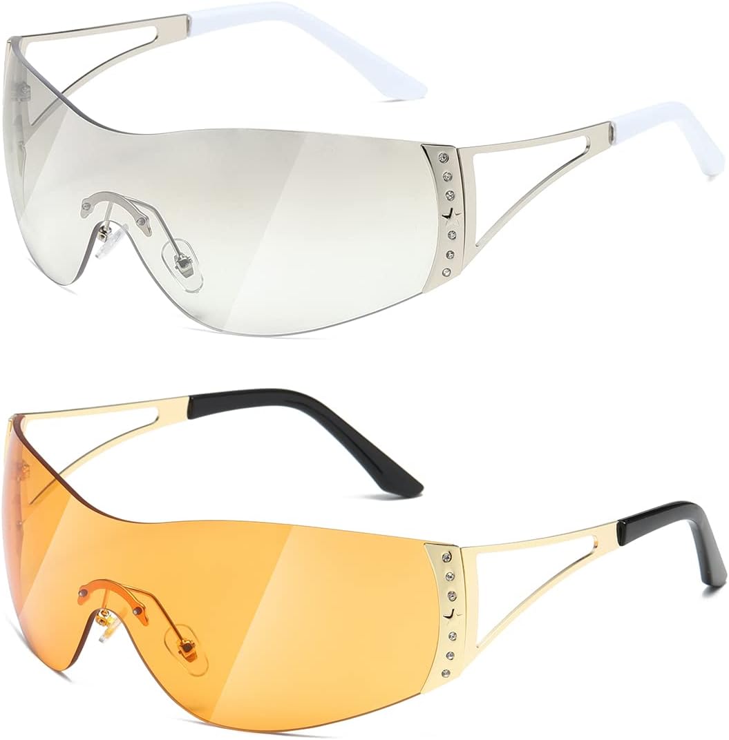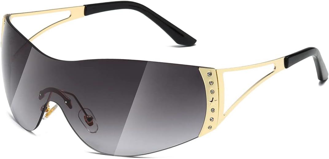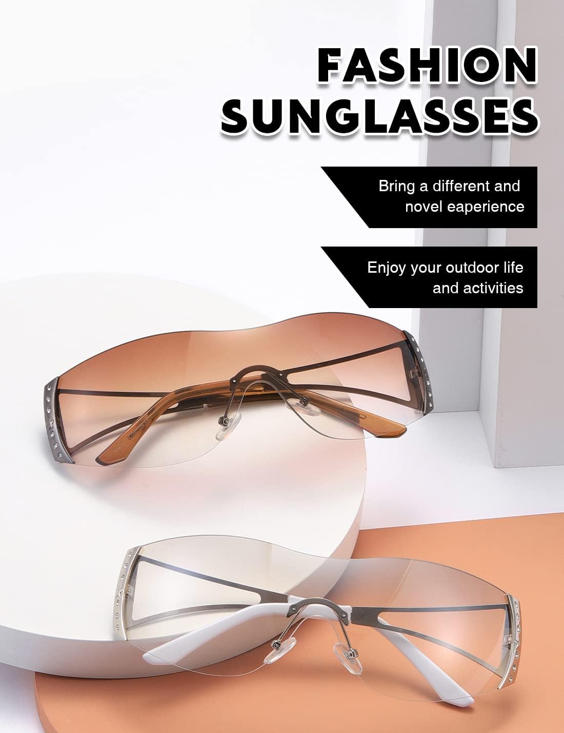 TIANYESY Y2K Sunglasses For Women Men Fashion Shield Rimless Wrap Around Sunglass Gradient Lens Trendy Oversize Sun Glasses
